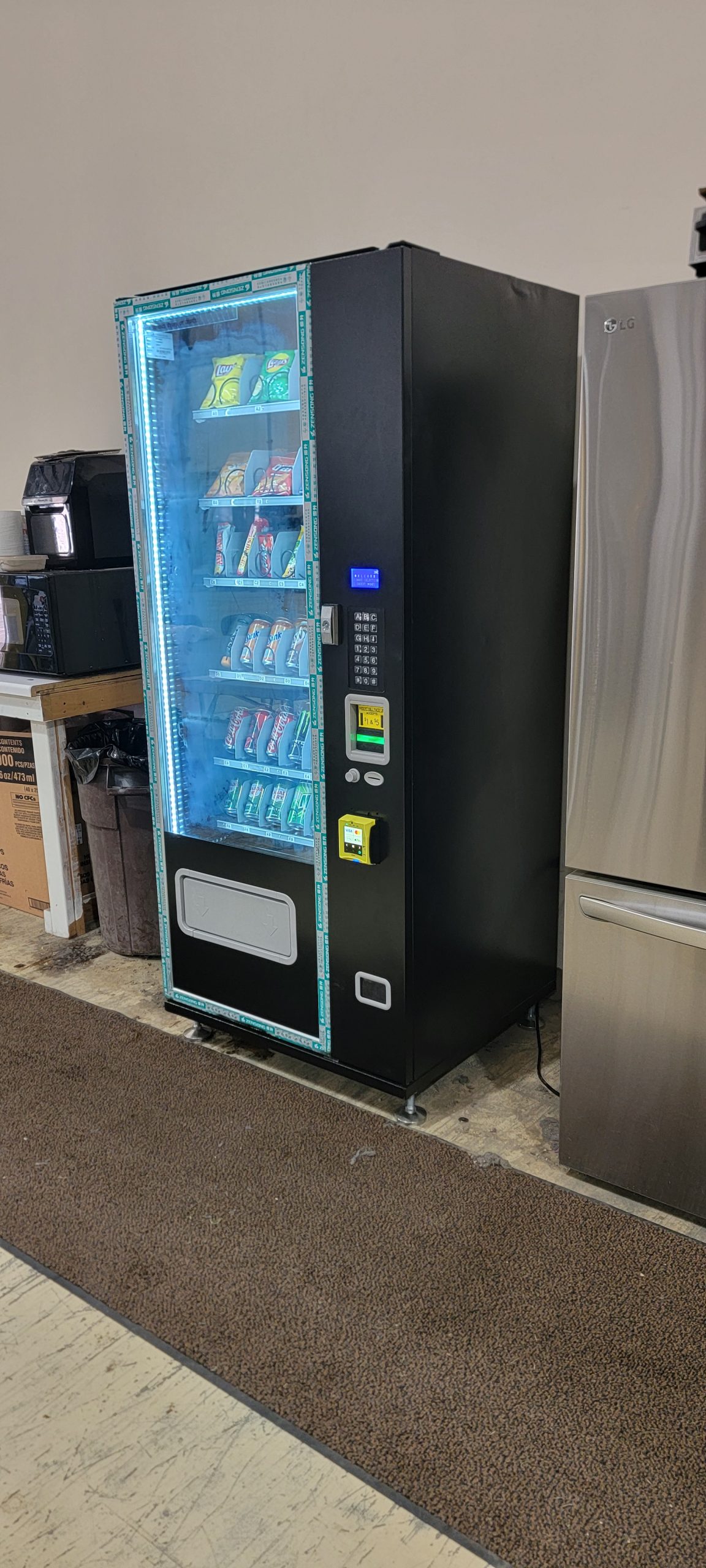 Brand New Medium size G636 Combo vending machine at a manufacturing warehouse in Hudson, Ohio with about 35 employees. Purchase includes Nayax card reader, inventory change. The vending machine comes with waranty.Turnkey Opportunity!!