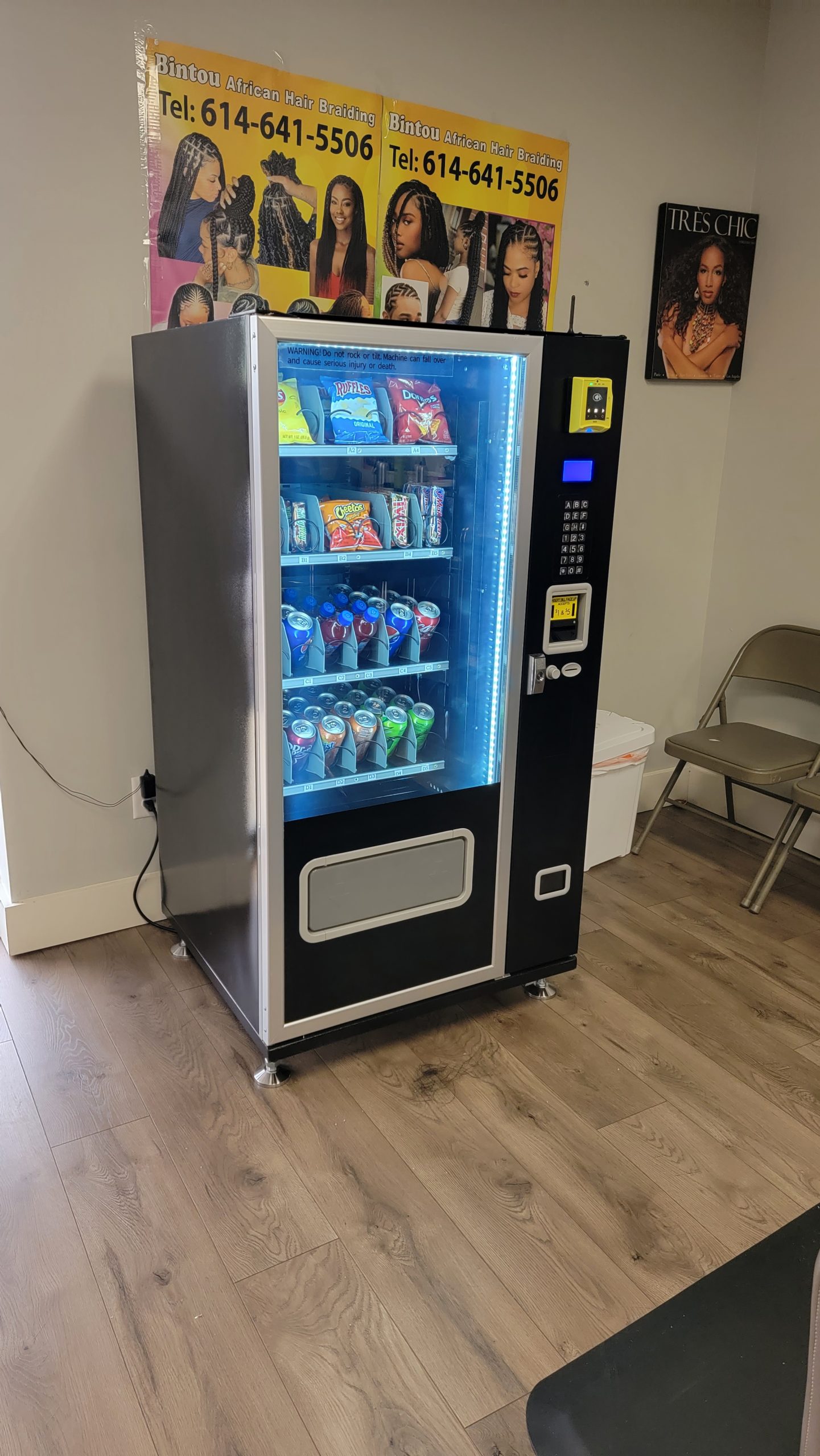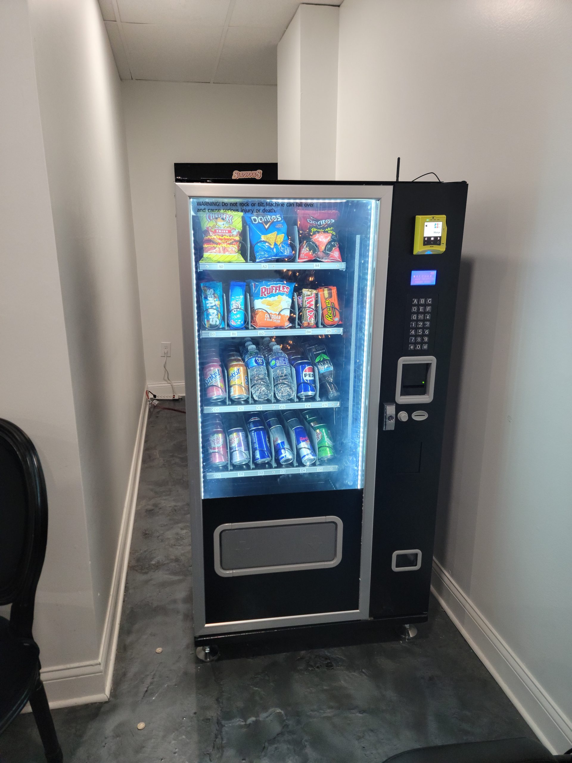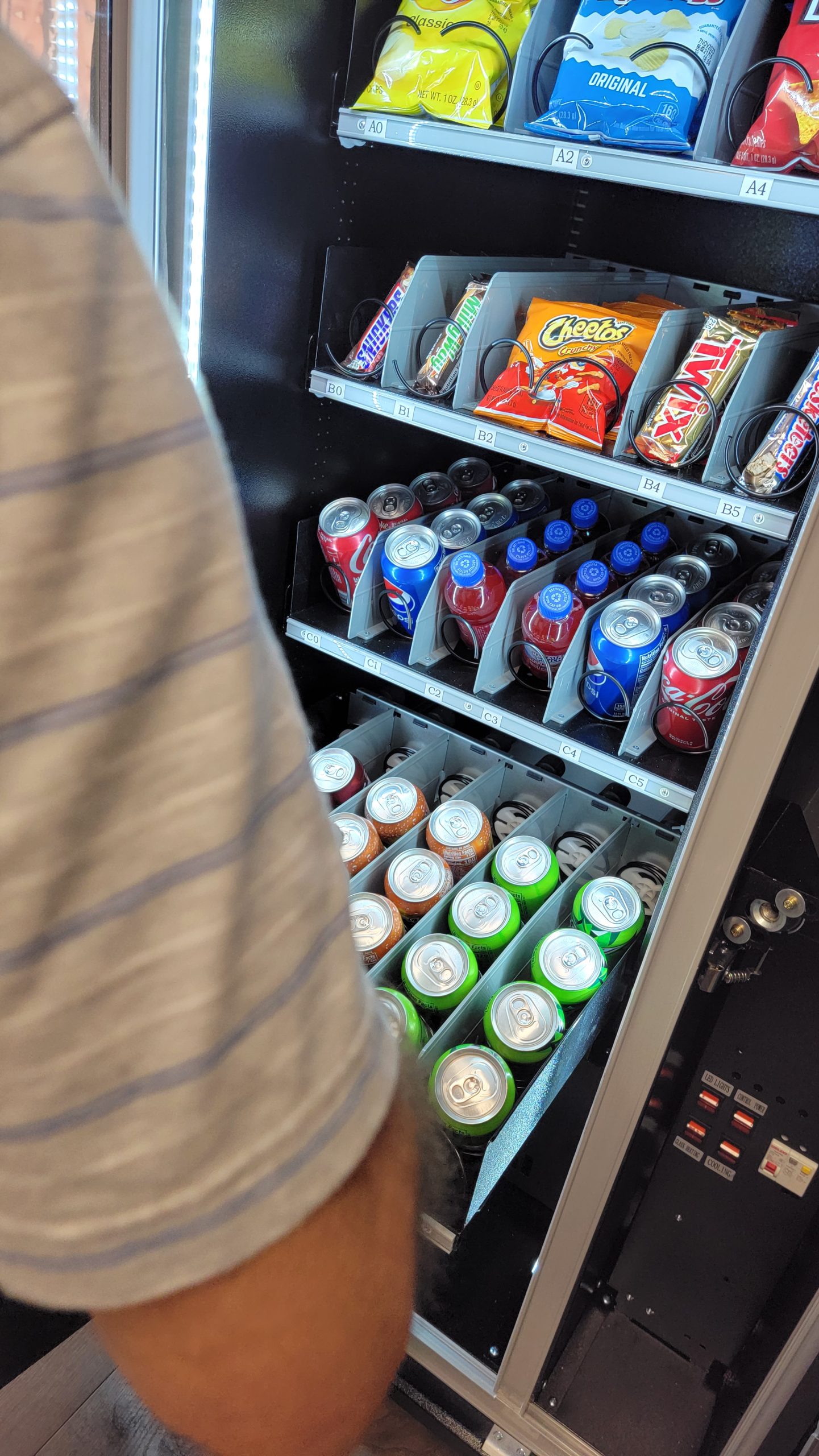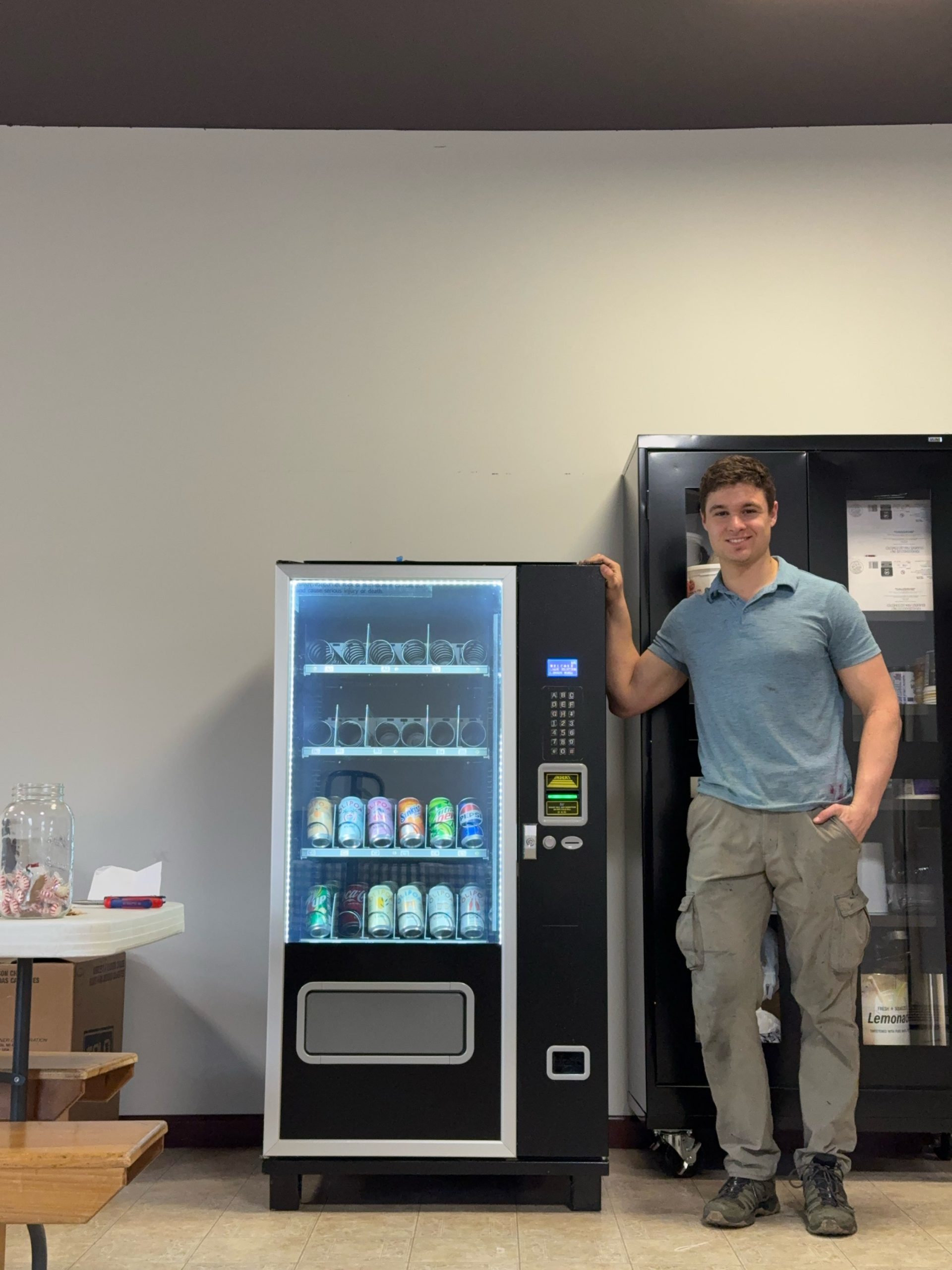 • Combination Vending Machine, capable of vending snacks, pastries, candies and drinks
