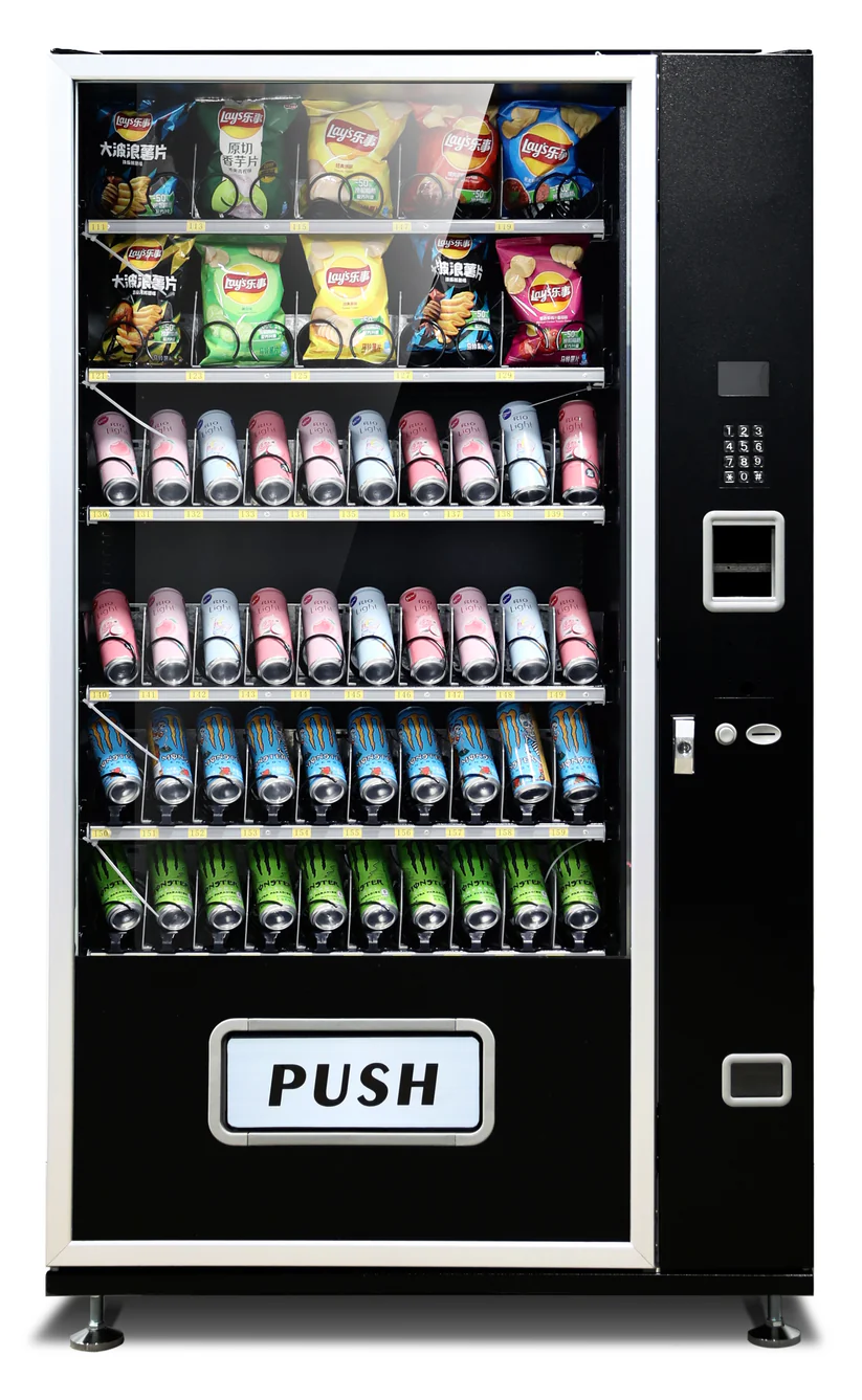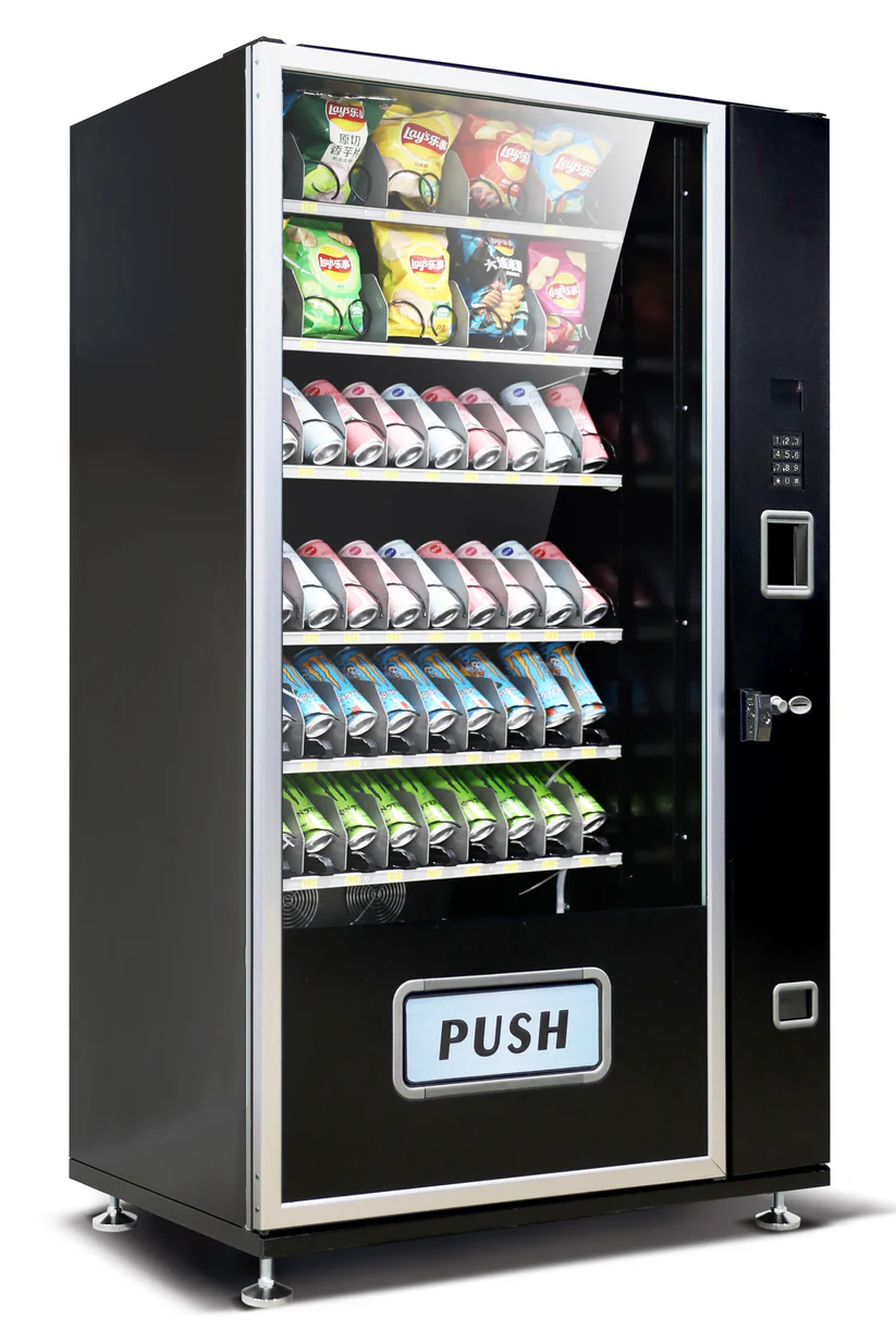 • Combination Vending Machine, capable of vending snacks, pastries, candies and drinks