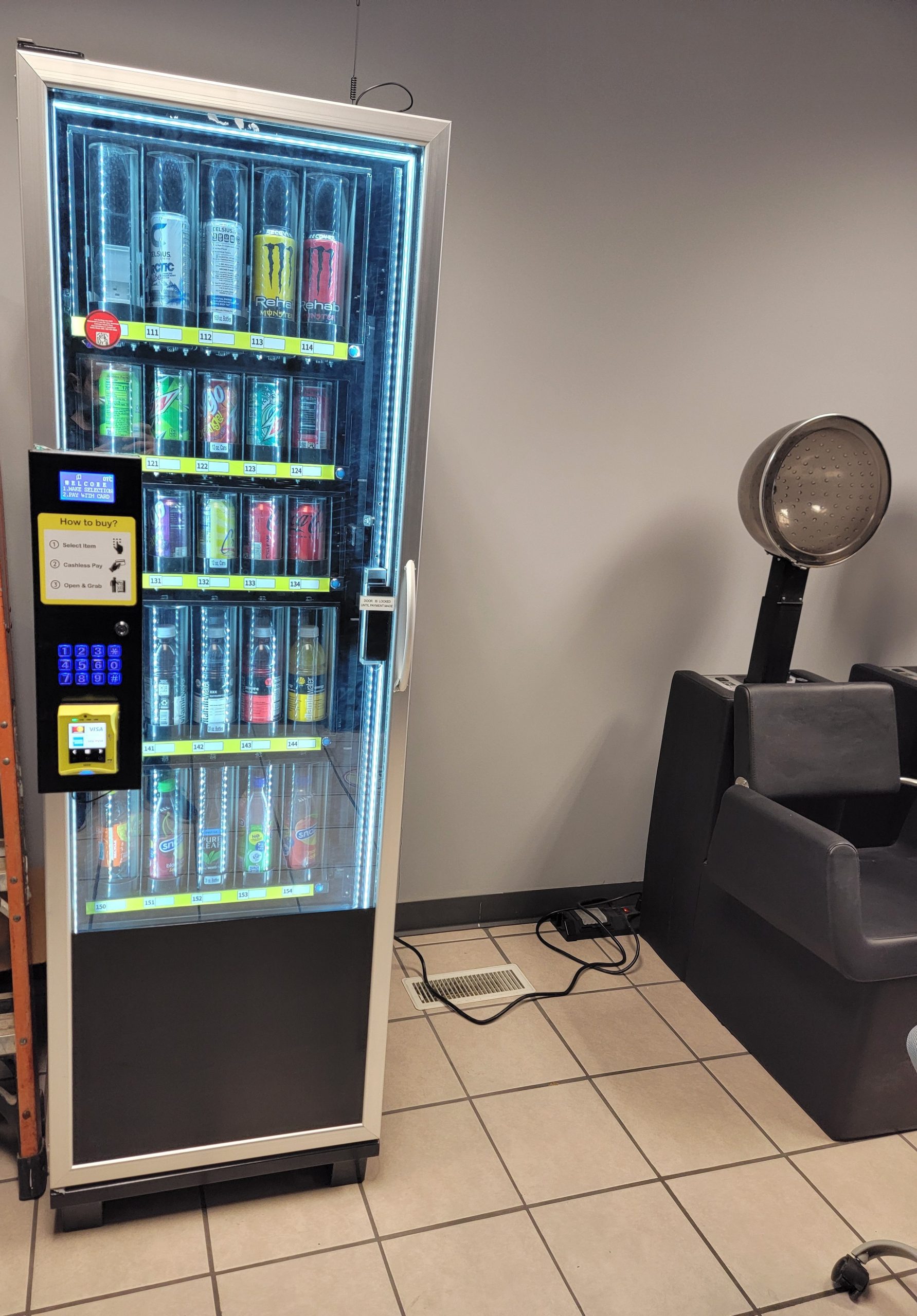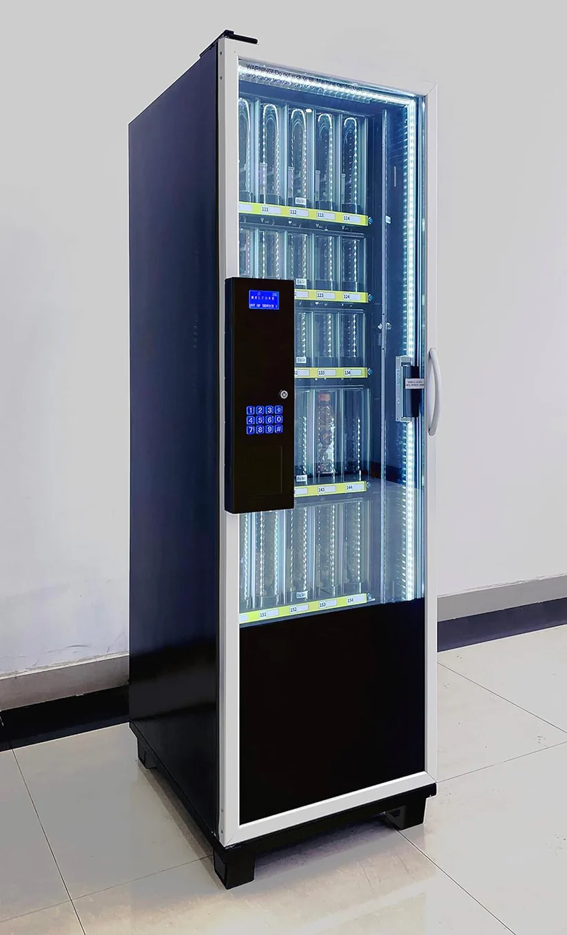 • Cashless drink vending machine, capable of vending different size cans and bottles
